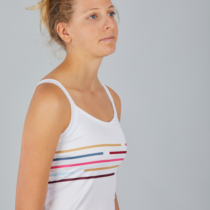 • Top en geïntegreerde beha in stretchy antibacterieel microvezelmateriaal.